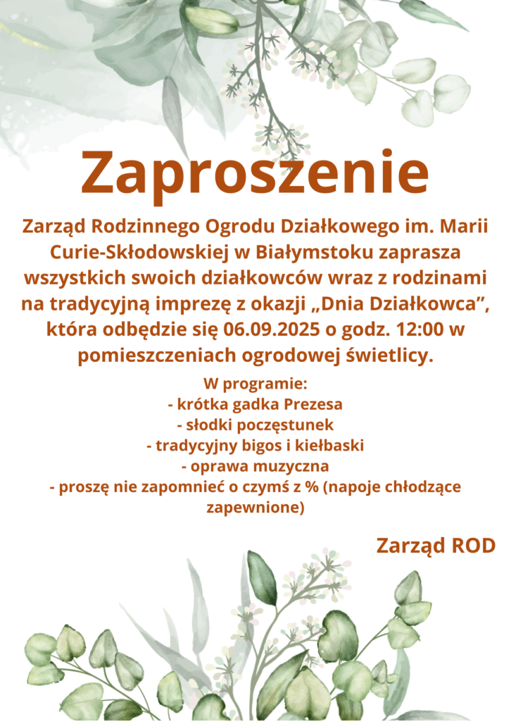 WAŻNE! – Formularz działkowca